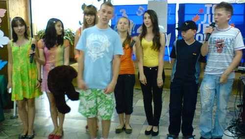 "Szkolna wycieczka" to scenariusz wymy??lony dawno temu przez ekip? kabaretow? pana A. Musia??owskiego, p????niej zmodyfikowany i rozszerzony przez pana I. Skubicki pos??u??y?? jako ??r??d??o sukces??w zespo??u Paradox 21. Teraz wykorzystali??my ten motyw z udzia??em ??wie??ych ludzi, kt??rzy zadebiutowali szkolnymi jase??kami w ubieg??ym roku. Na zdj?ciu: Klaudia, Kinga, Asia, ?ukasz, Ania, Ania, Krzysiu i Micha?? podczas przedstawienia 20 czerwca 2007 w holu szko??y.