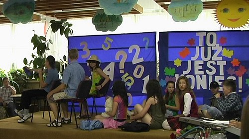 Odpoczynek po przedstawieniu. W scence wzi?li udzia??: ?ukasz Ch??opecki (kierowca), Bartek Auguustyniak (kierownik Gw????d??), Klaudia Jakubowska (nauczycielka Euglena), Dorota Sroka (policjantka), w rolach uczni??w jad?cych na wycieczk? wyst?pili: Asia Cichy, Ania Drozdowska, Kinga Kubacka, Gabrysia Turczy??ska, Ania Sa??atarow, Krzysiu Gajewski, Micha?? Banach. Warto doda?, ??e dla weteran??w (Augusta i Ch??opka) by?? to ostatni wyst?p w murach gimnazjum, w pewnym sensie nawet go??cinny, bo swoj? edukacj? zako??czyli dok??adnie dzie?? wcze??niej. |