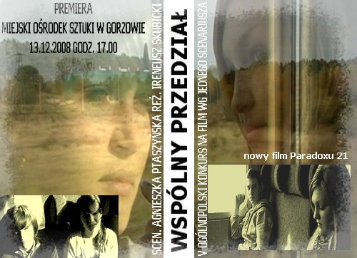 Otrzymali??my ju?? oficjalne zaproszenie i sami mamy przyjemno??Ä? zaprosiÄ? wszystkich naszych fan??w i nie tylko na uroczysty fina?? V edycji Og??lnopolskiego Konkursu Na Film Wed??ug Jednego Scenariusza, w kt??rym bierzemy udzia?? po raz trzeci. W tym roku opr??cz filmu obowiÄ?zkowego wg scen. Jacka Gali??skiego ("Taxi"), kt??ry wymaga?? zaanga??owania aktor??w z zewnÄ?trz, nakrÄ?cili??my film dodatkowy do scenariusza Agnieszki Ptaszy??skiej (tej samej, kt??ra napisa??a scenariusz "Wyjazdu" z 2006 roku). Ten film jest w ca??o??ci "paradoxowy" i r??wnie?? zosta?? wys??any, i stanie do konkursu. Nowe plenery, nowi aktorzy, nowa muzyka. Zapraszamy do Miejskiego O??rodka Sztuki w Gorzowie przy ul. Pomorskiej 13 grudnia na godzinÄ? 17.00. Po finale poczÄ?stunek :P