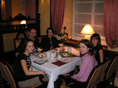 PiÄ?tek wiecz??r, 8 grudnia. Przyszed?? czas na ??wiÄ?towanie naszego sukcesu - kolacja z deserem w "Don Vittorio", najdro??szej restauracji w mie??cie. Dzie?? p????niej, w sobotni wiecz??r impreza u pana IS, na kt??rej oglÄ?dali??my na DVD kulisy powstania naszego filmu. |